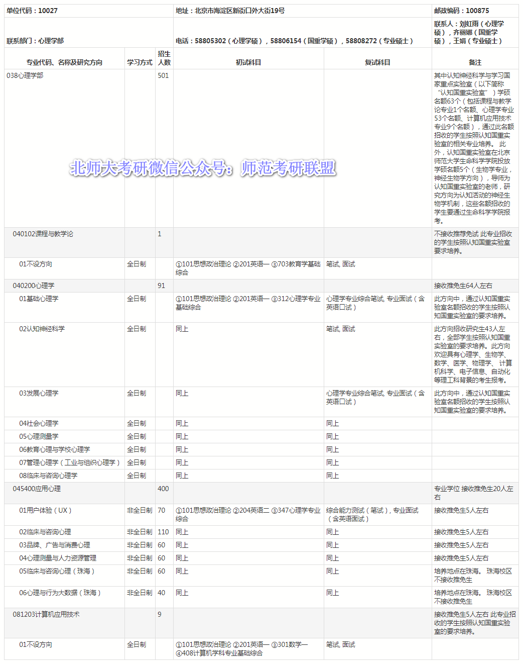 北师大考研辅导班:北京师范大学2021年硕士研究生心理学部考研招生目录及招生人数公布
