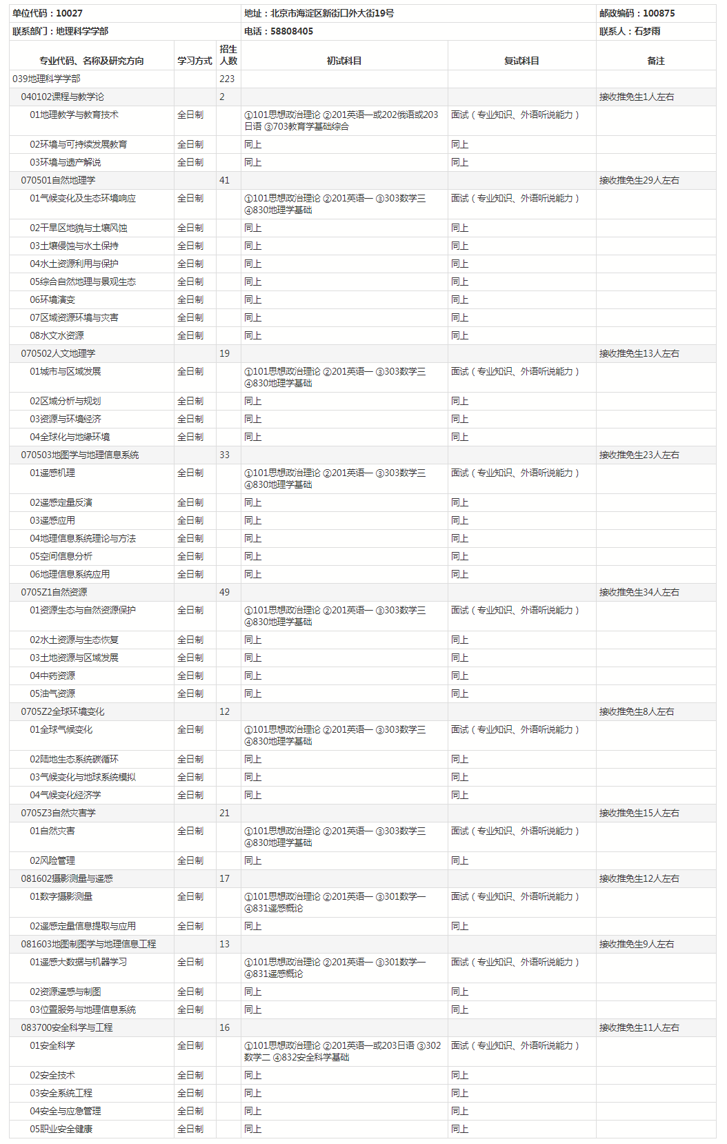 北师大考研辅导班:北京师范大学2021年硕士研究生地理科学学部考研招生目录及招生人数公布