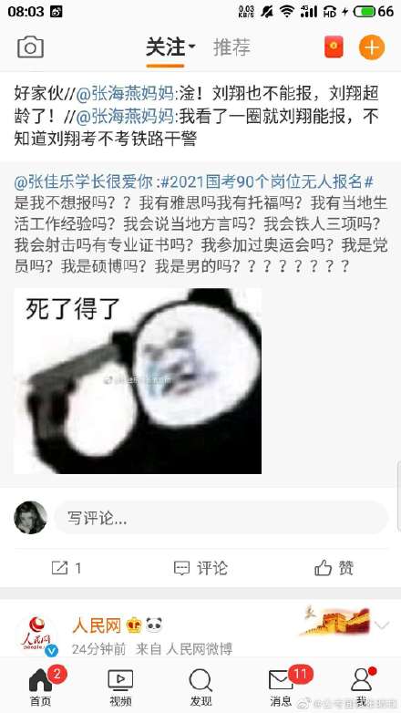 当然也有最冷岗位,报考人数挂零。小编今天看到微博一个图片不禁笑出了声。