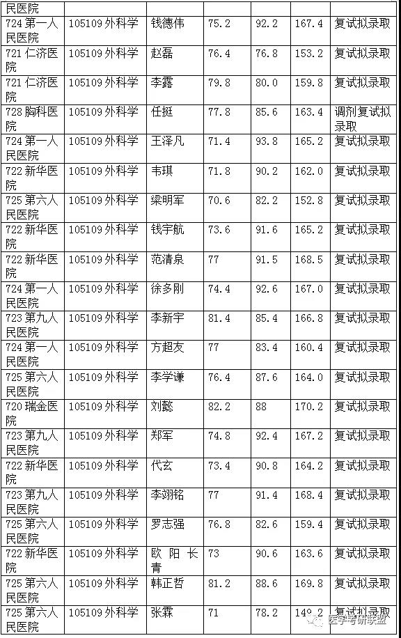 上海交通大学外科学专硕2020年考试科目、报录比、录取名单、考研经验汇总
