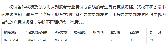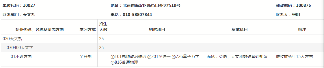 天文学系本科设天文学一个专业。同时有3个硕士点:其中天体物理学有博士学位授予权。天文学系精干、高水平的师资队伍和良好的育人环境,为学生提供了研究型学习条件,二三年级的优秀学生可以申请“本科生科学研究项目”,配备指导教师,指导学生的科研工作,三年级后大部分同学可以到各天文台进行科研和台上实习。天文学系已形成教学、科研两个中心。天文学专业培养目标:具有良好的数理基础和天文学理论,掌握天文观测和处理技术,有较强计算机应用能力,能从事天文学及相关领域的研究、教学、科技开发工作。