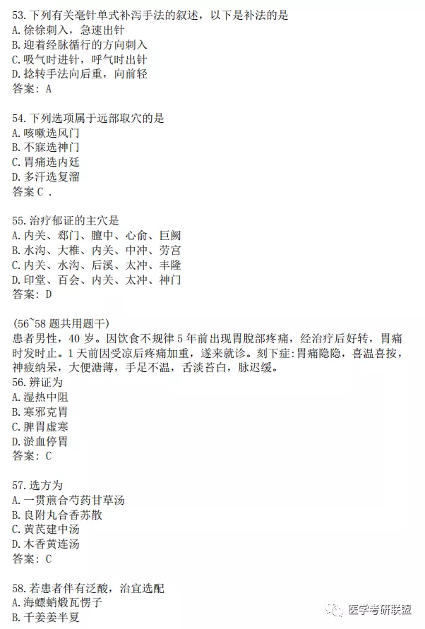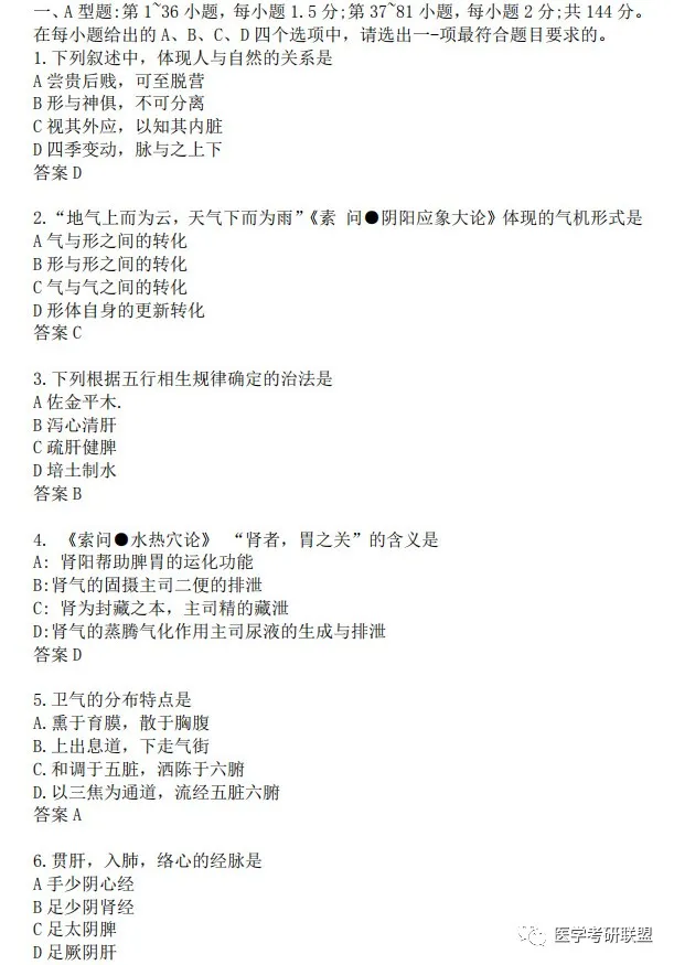 2021年全国硕士研究生招生考试中医综合307考研真题:A型题