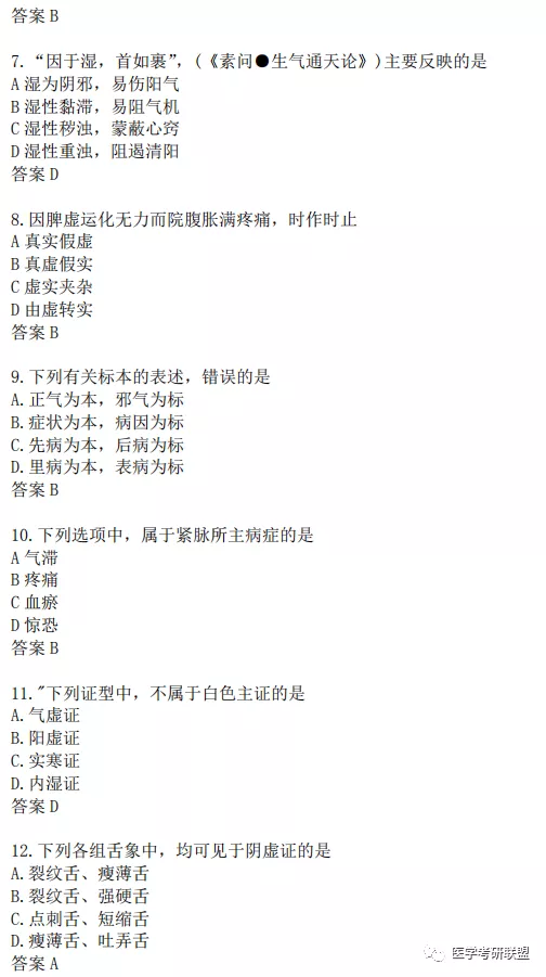 2021年全国硕士研究生招生考试中医综合307考研真题:B型题