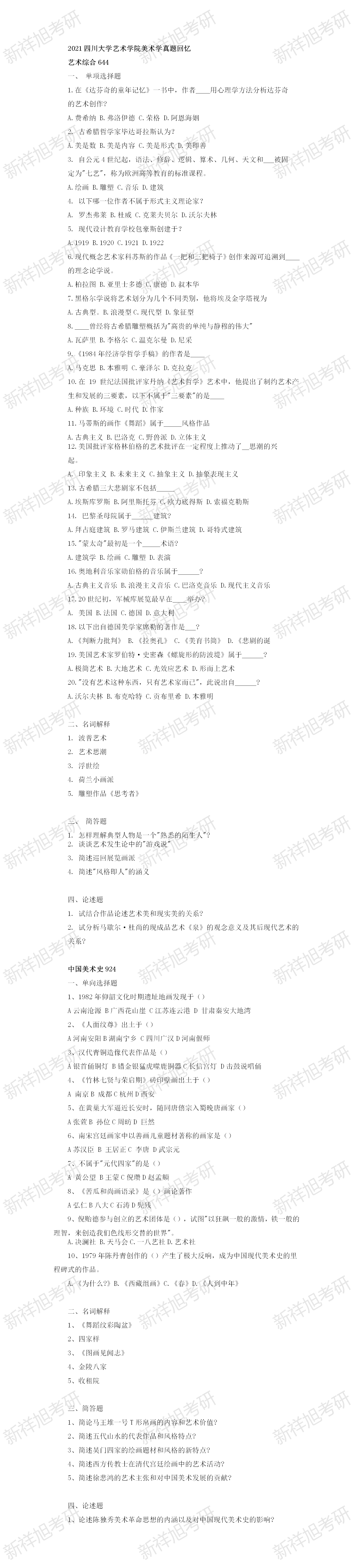 2021四川大学艺术学院美术学真题回忆