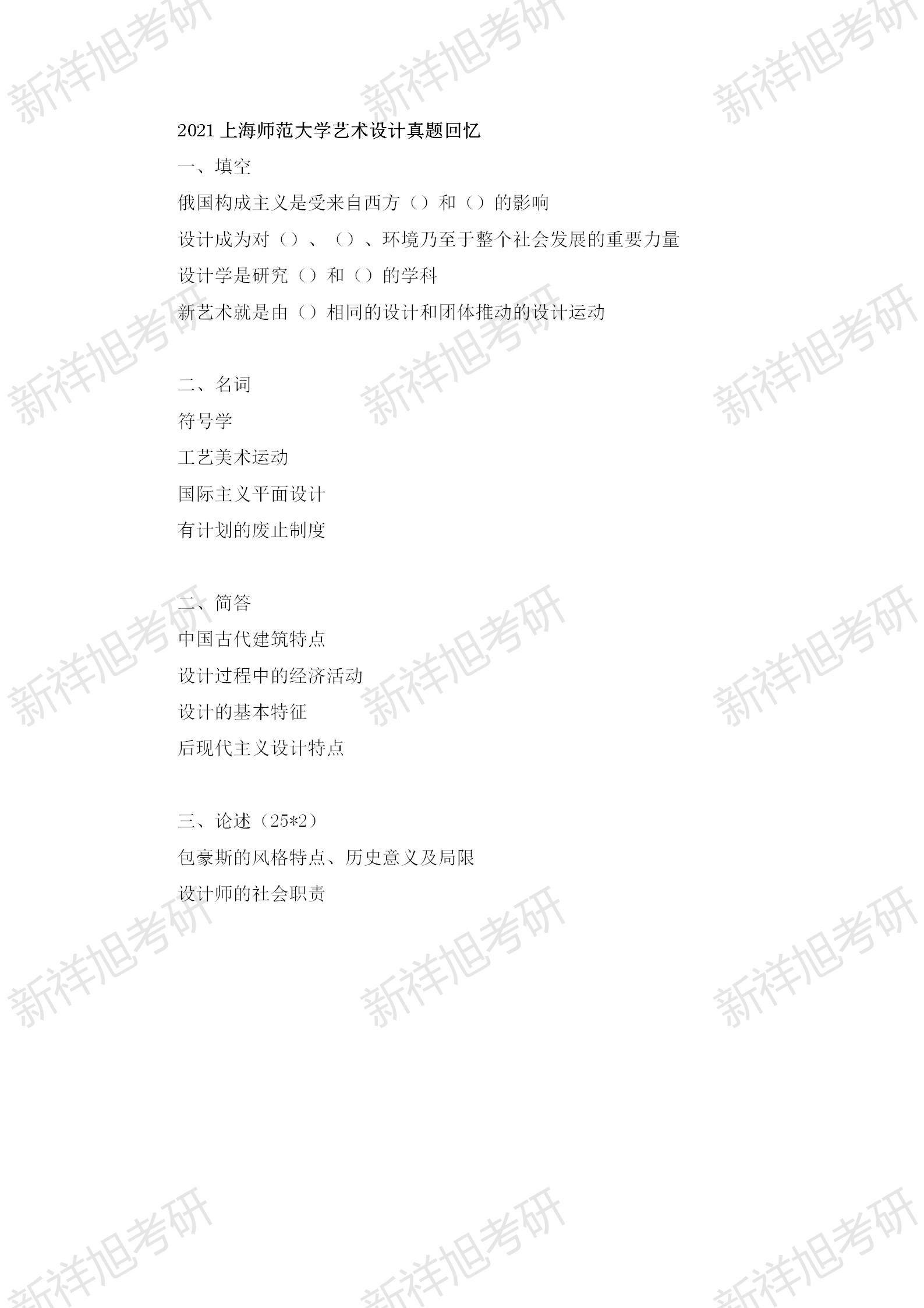 2021上海师范大学艺术设计真题回忆