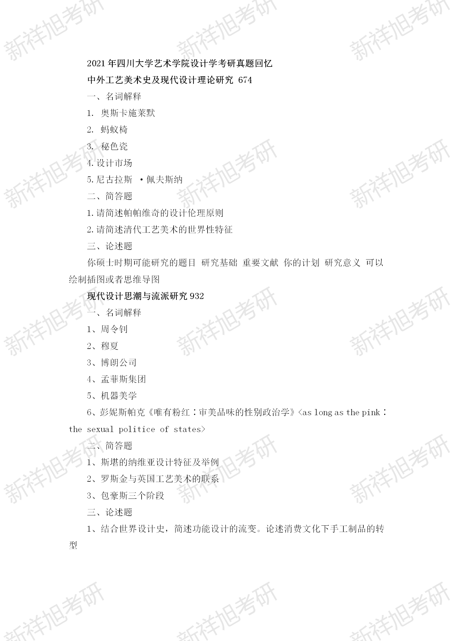 2021年四川大学艺术学院设计学考研真题回忆