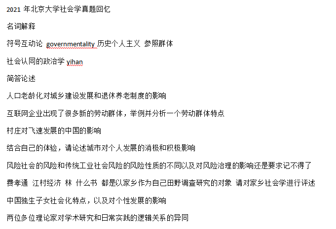 2021年北京大学社会学考研真题