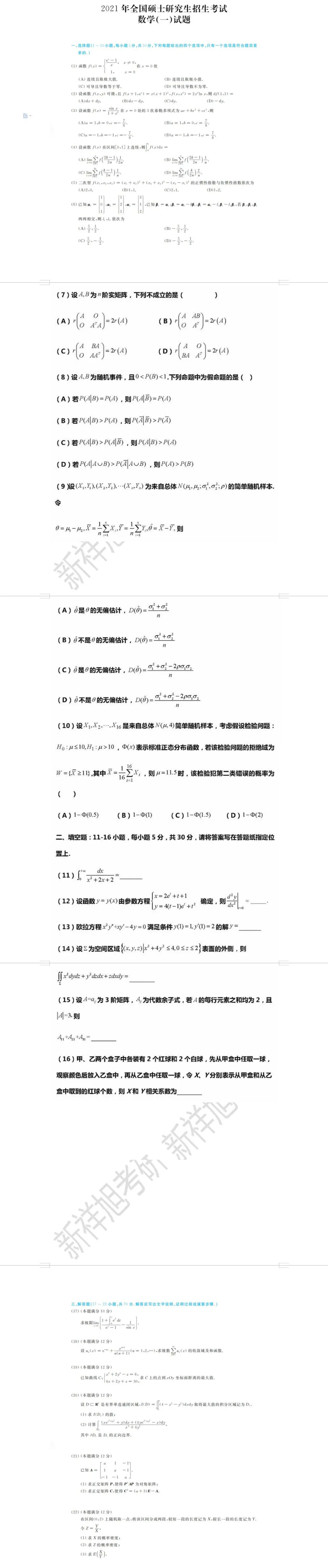 本试卷由新祥旭陈老师整理,以供考研学子们参考。