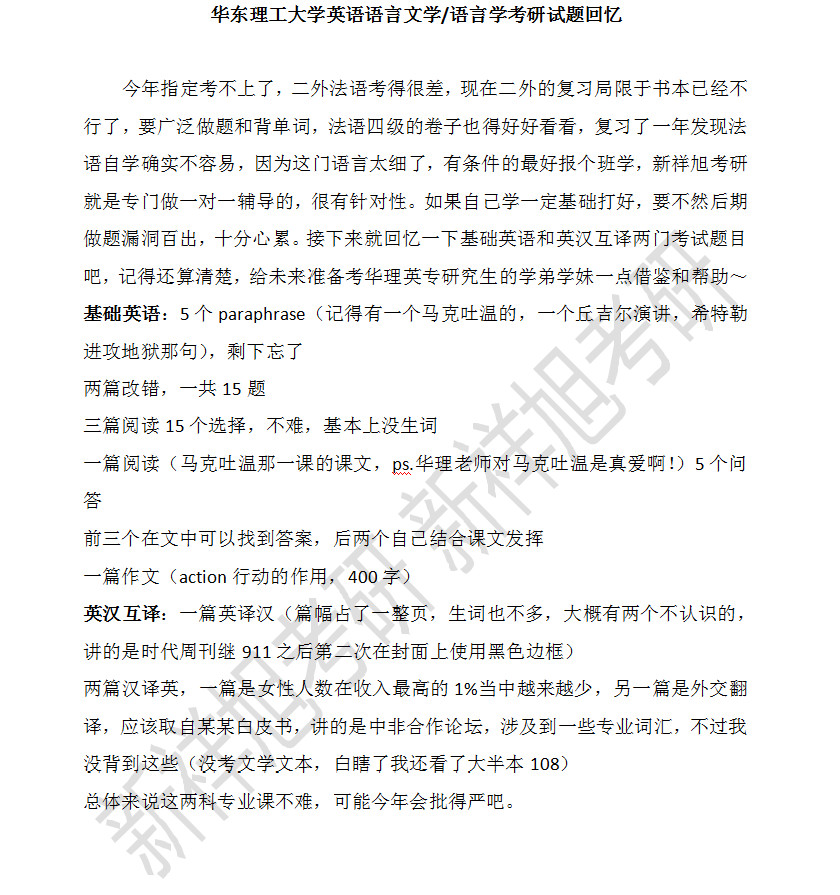 新祥旭考研:华东理工大学英语语言文学/语言学考研试题回忆