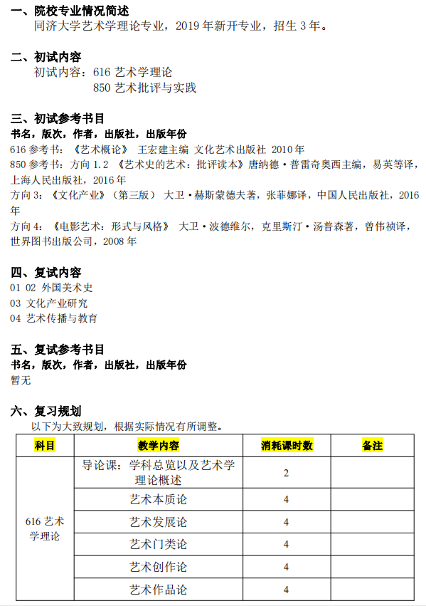 2022年同济大学艺术学理论考研专业课一对一授课计划大纲