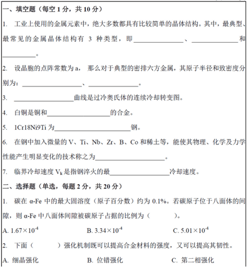 合金中的相结构、合金的结晶过程(包括平衡结晶与不平衡结晶)及合金相图的建立、二元合金相图的基本类型、合金性能与相图的关系