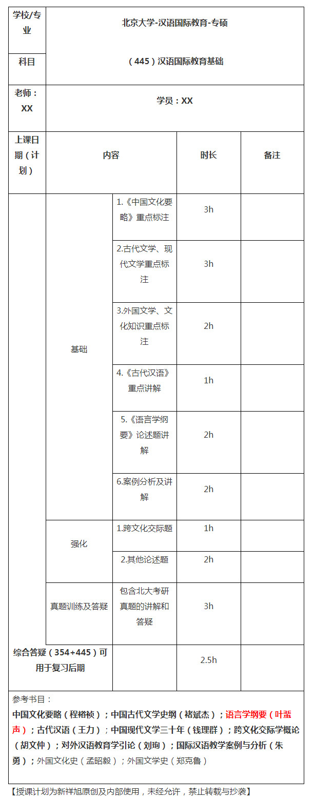 北京大学考研辅导班:2022年北京大学汉语国际教育考研专业课一对一授课计划