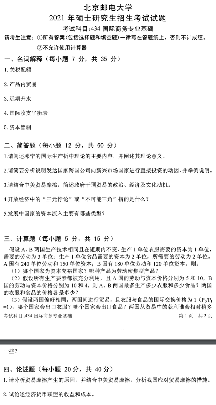 北邮考研辅导班:2021年北京邮电大学国际商务硕士考研专业课434真题分享