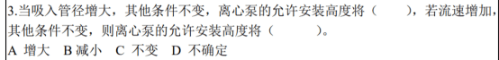 (1)选择题以概念性及分析考察为主,计算为辅,分值一般为2分一个。例如2016年第三题,就是通过对离心泵安装高度公式的简单分析,考察流速、管径等条件变化时对离心泵安装高度的影响。难度**。