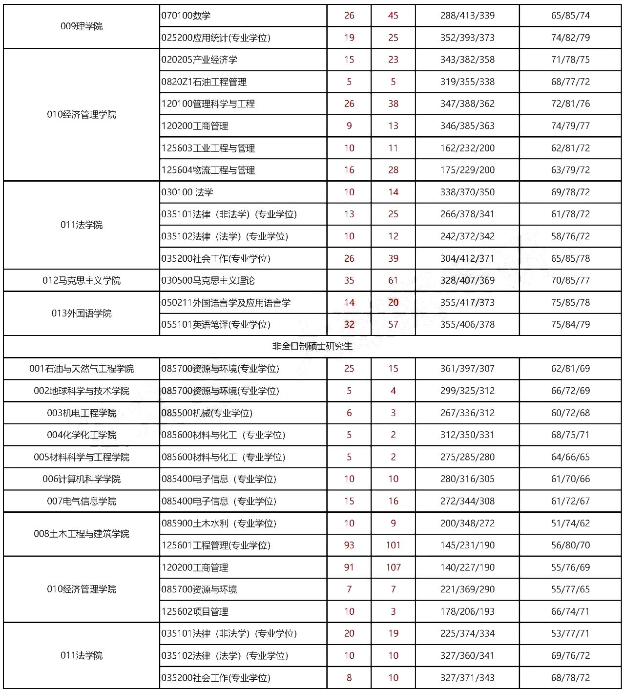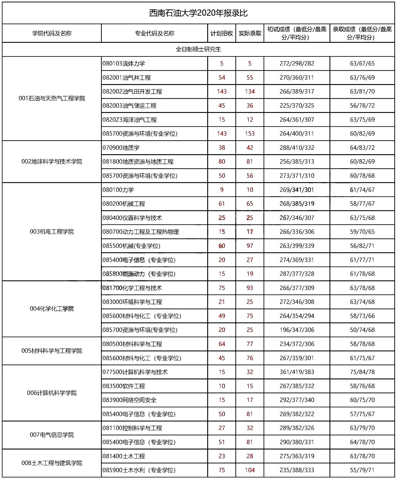 2020-2021年西南石油大学各专业的分数线及2020年报录信息。