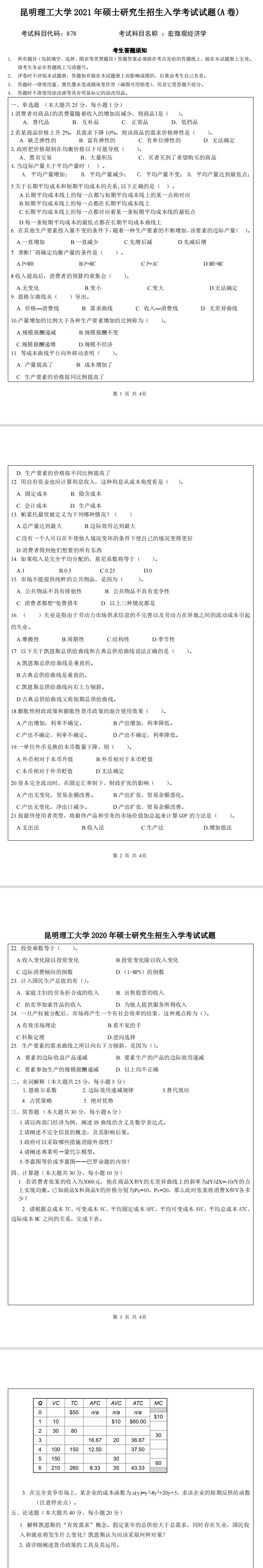 昆明理工大学考研辅导班:2021年昆明理工大学878宏微观经济学考研真题