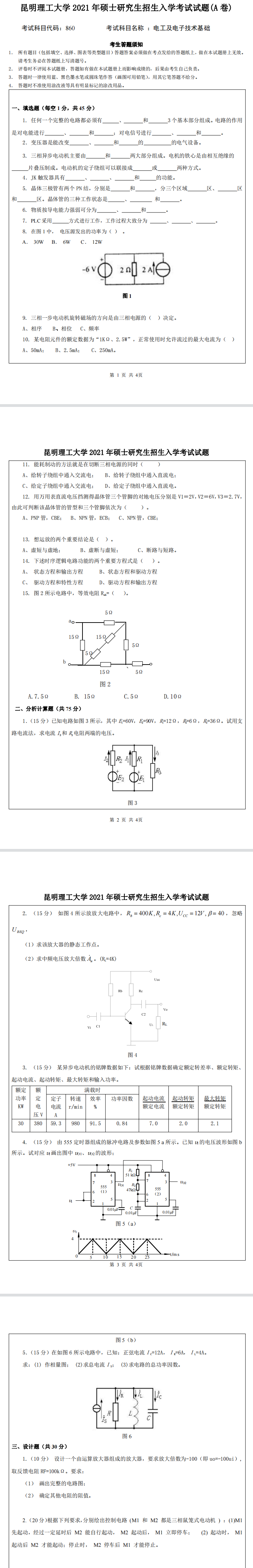昆明理工大学考研辅导班:2021年昆明理工大学研究生入学考试860电工及电子技术基础考研真题