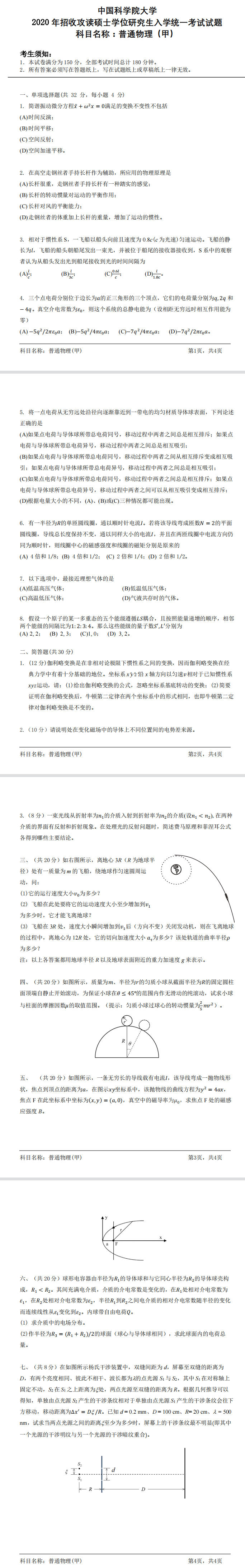 国科大考研辅导班:2020年中国科学院大学617普通物理(甲)考研真题