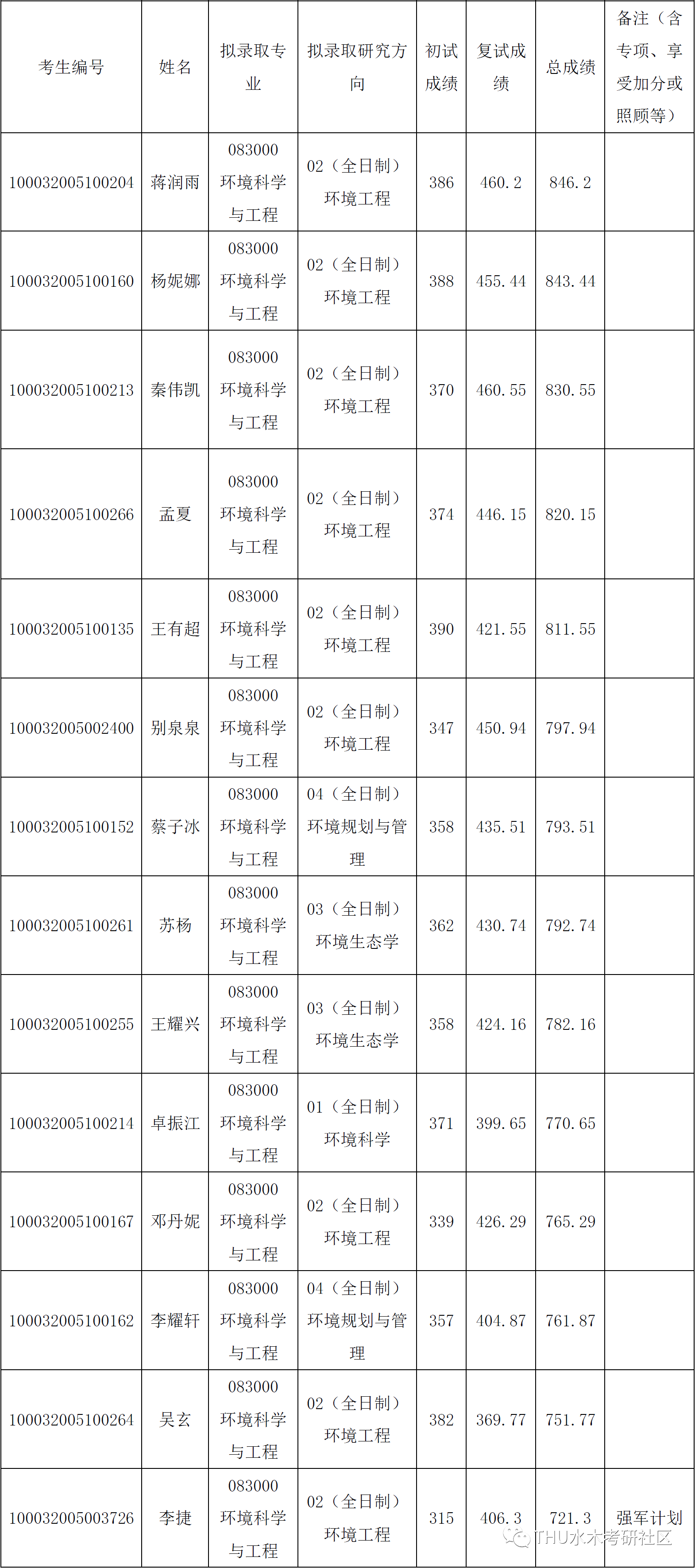 清华大学2022年环境学院硕士研究生拟录取名单公示 经综合考核和研究生招生工作领导小组讨论,报学校研究生招生工作领导小组批准,清华大学环境学院2022年硕士研究生拟录取名单已确定,现予以公示。