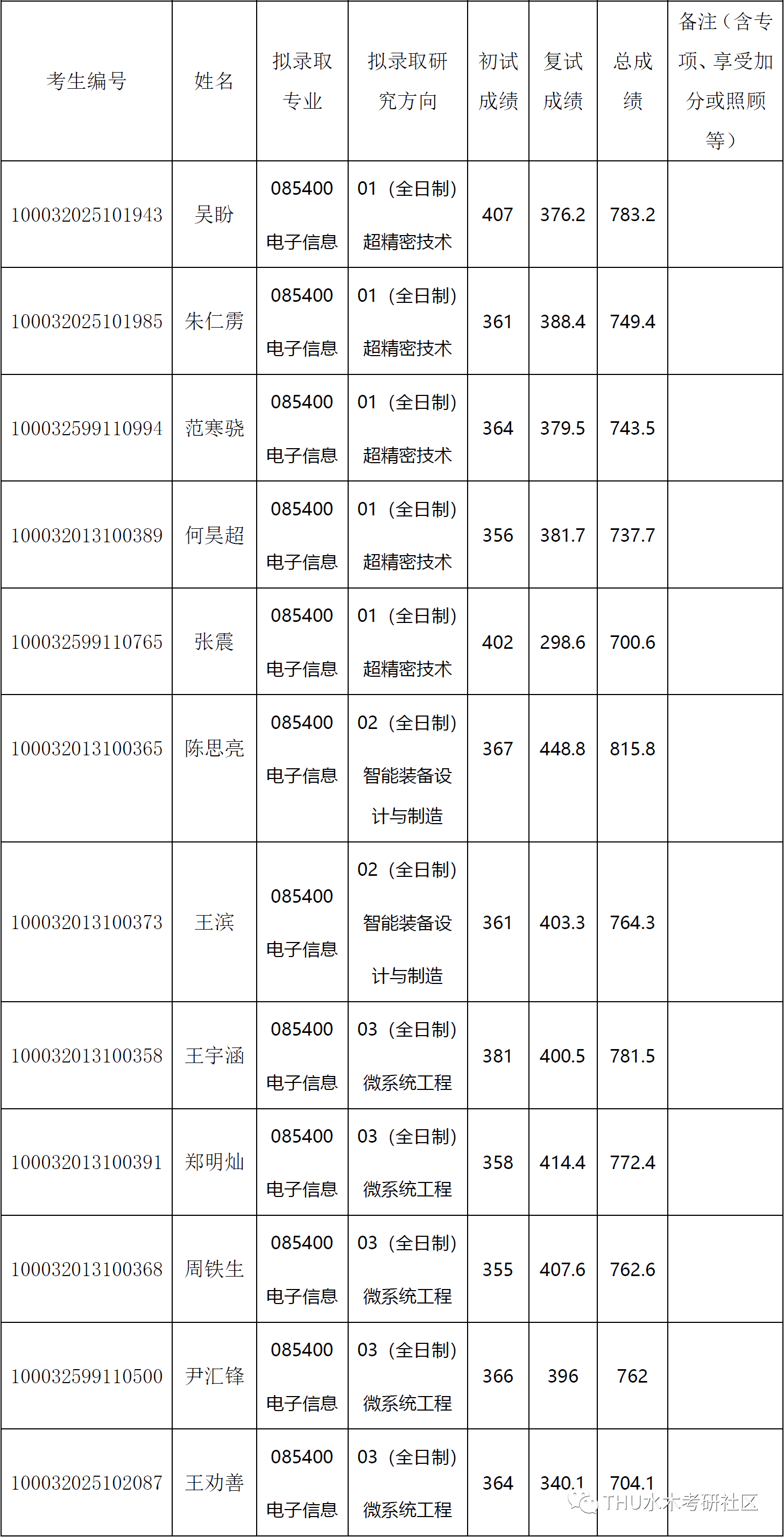 经综合考核和研究生招生工作领导小组讨论,报学校研究生招生工作领导小组批准,清华大学精密仪器系2022年硕士研究生拟录取名单已确定,现予以公示。