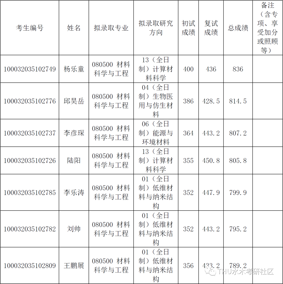 清华大学2022年材料学院硕士研究生拟录取名单公示 经综合考核和研究生招生工作领导小组讨论,报学校研究生招生工作领导小组批准,清华大学材料学院2022年硕士研究生材料科学与工程专业拟录取名单已确定,现予以公示。