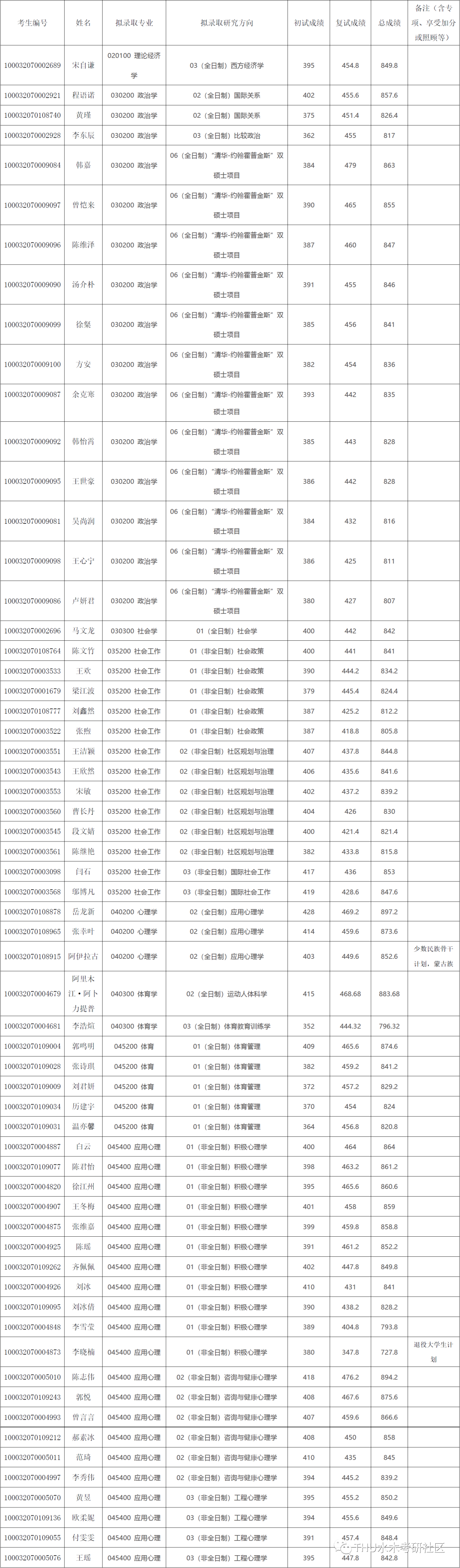 清华大学2022年社会科学学院硕士研究生拟录取名单公示 经综合考核和研究生招生工作领导小组讨论,报学校研究生招生工作领导小组批准,清华大学社会科学学院2022年硕士研究生拟录取名单已确定,现予以公示。