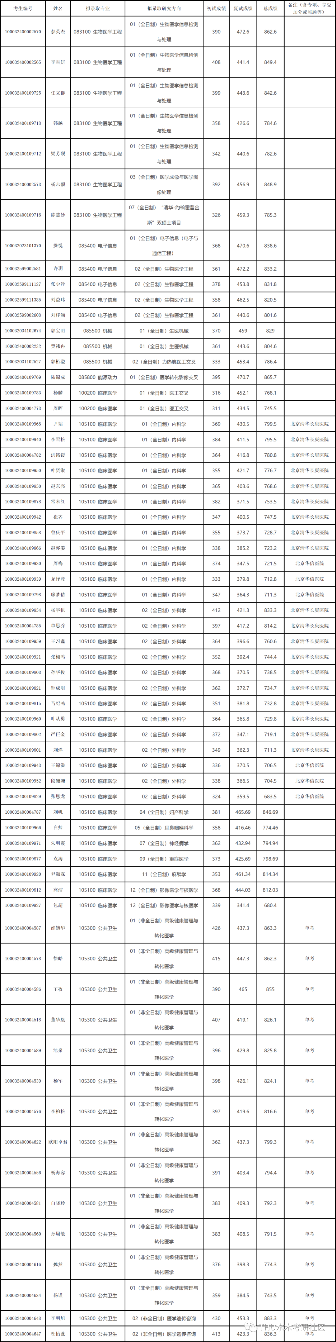 清华大学2022年医学院硕士研究生拟录取名单公示 经综合考核和研究生招生工作领导小组讨论,报学校研究生招生工作领导小组批准,清华大学医学院2022年硕士研究生拟录取名单已确定,现予以公示。