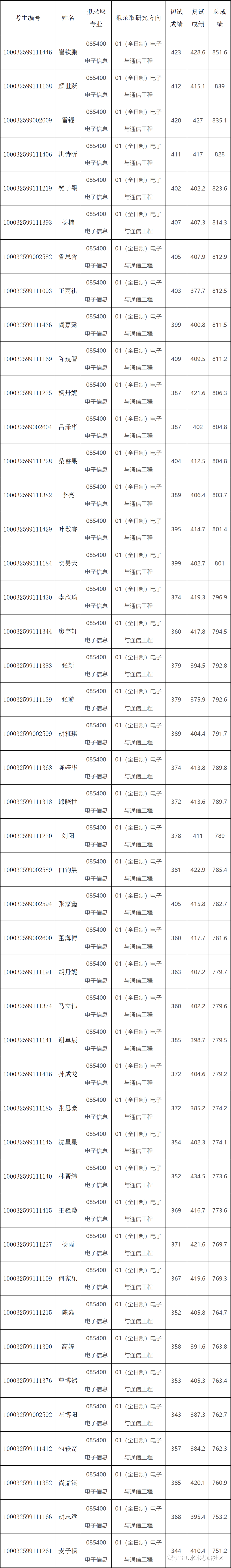 经综合考核和研究生招工作领导小组讨论,报学校组批准,清华大学深圳国际研究生院2022年硕士研究生电子信息(电子与通信工程)项目拟录取名单已确定,现予以公示 。