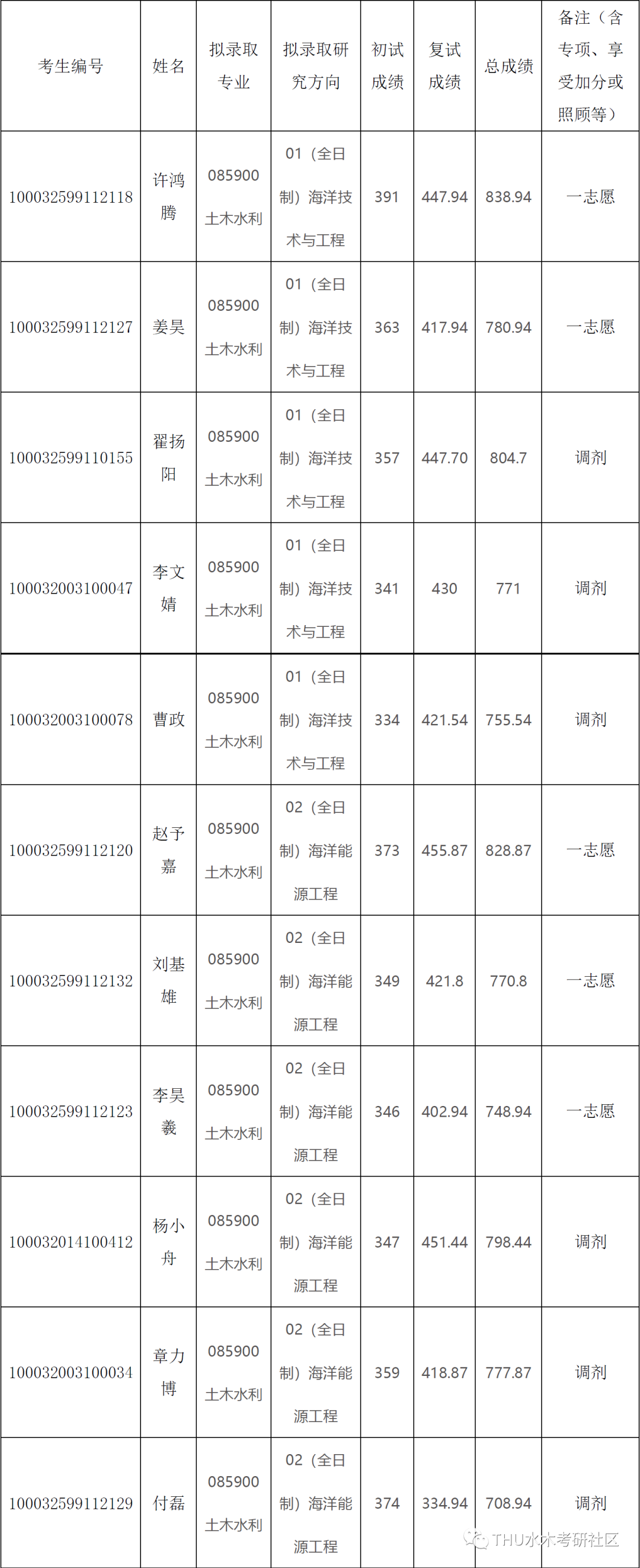 经综合考核和研究生招生工作领导小组讨论,报学校研究生招生工作领导小组批准,清华大学深圳国际研究生院2022年硕士研究生土木水利拟录取名单已确定,现予以公示。