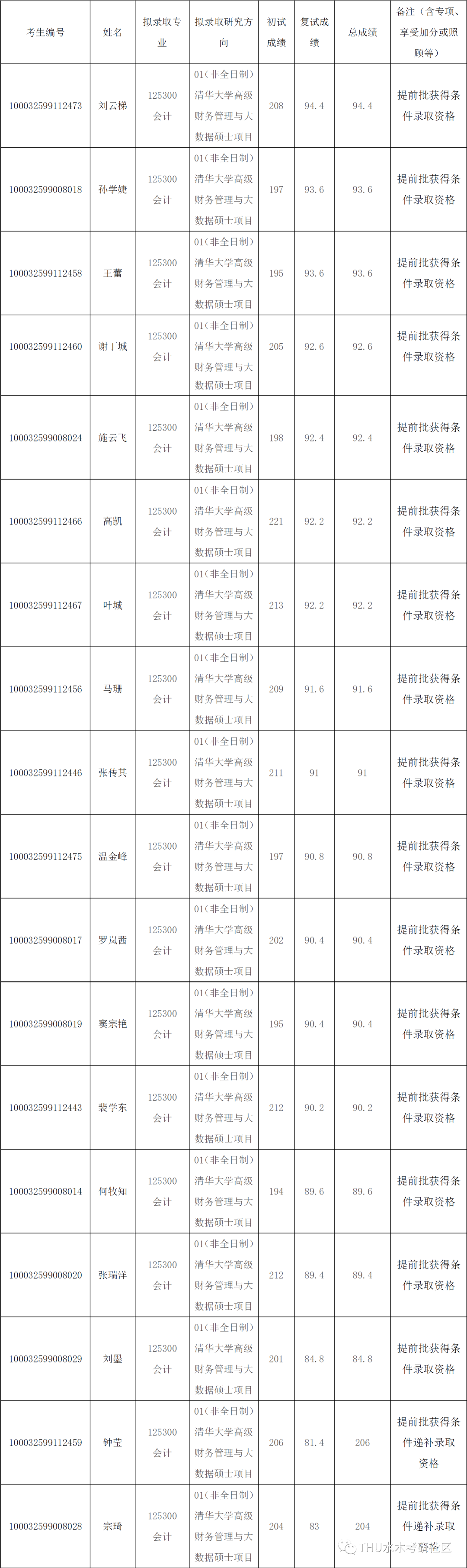 经综合考核和研究生招生工作领导小组讨论,报学校研究生招生工作领导小组批准,清华大学深圳国际研究生院2022年硕士研究生清华大学高级财务管理与大数据硕士项目拟录取名单已确定,现予以公示。