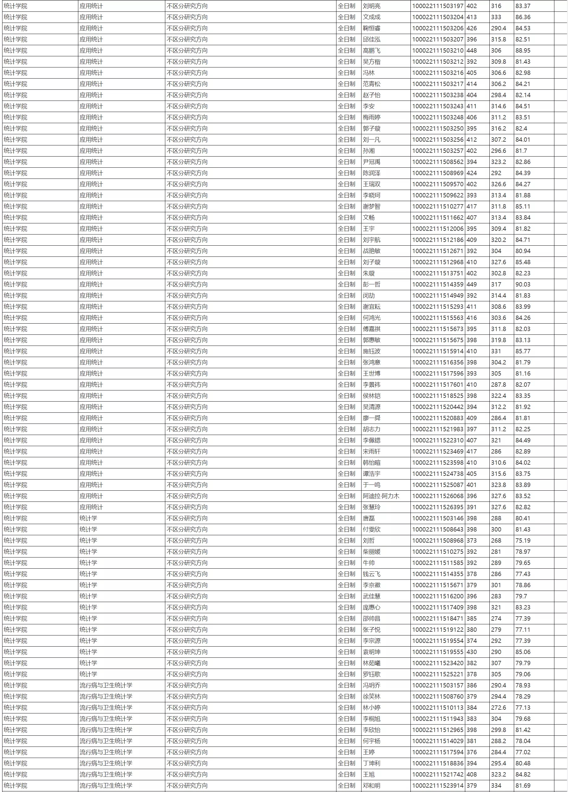 2022年中国人民大学统计与大数据研究院硕士研究生招生拟录取名单