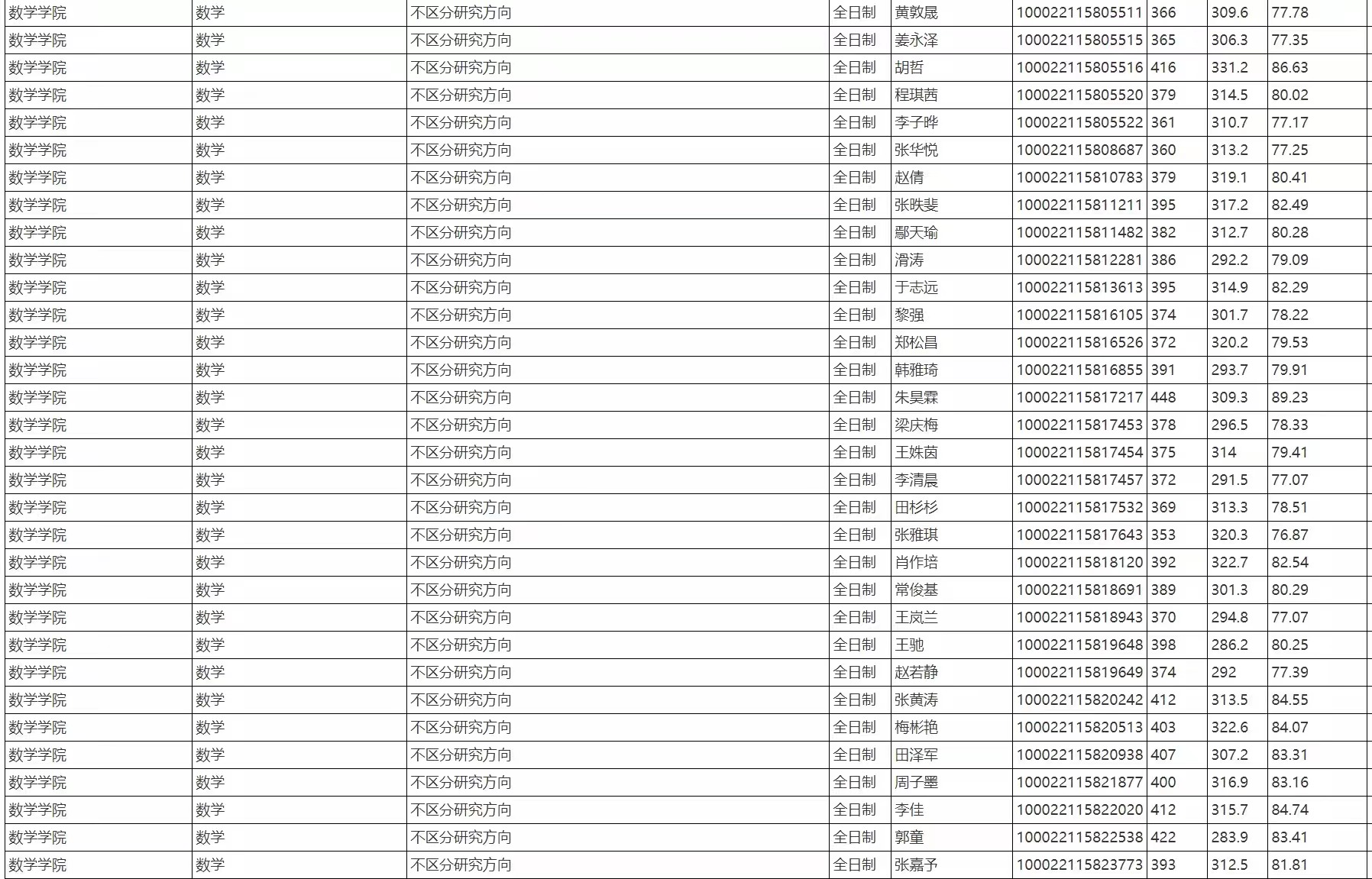 中国人民大学考研辅导班:2022年中国人民大学数学学院硕士研究生招生拟录取名单