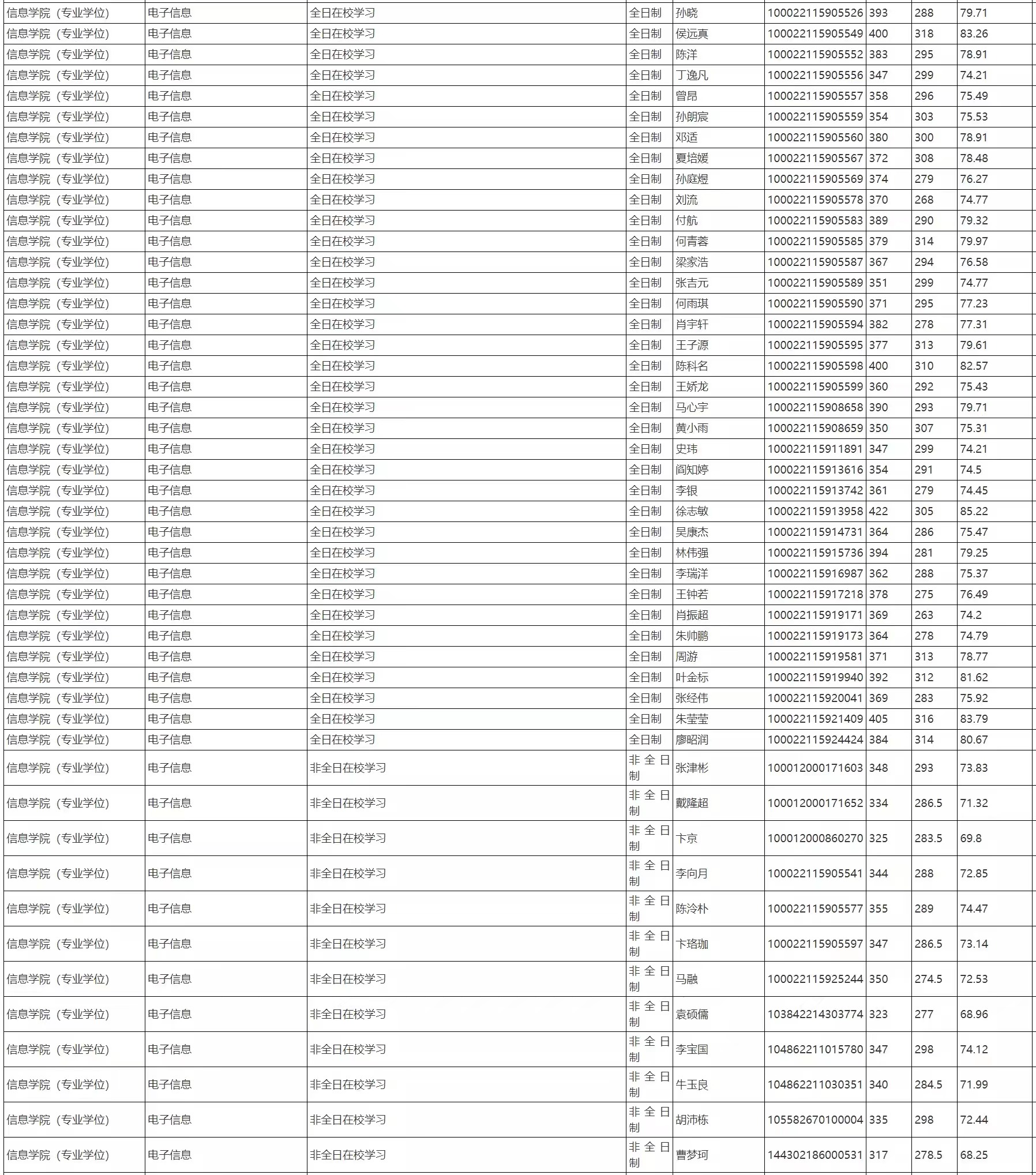 中国人民大学考研辅导班:2022年中国人民大学信息学院(专业学位)硕士研究生招生拟录取名单