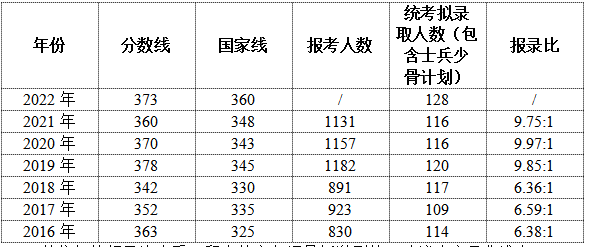 今年的复试线为373分,151人进入复试,录取128人(含士兵、少骨计划),复试录取比约为1.2:1。