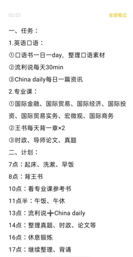 前期可以找一个研友一起探讨考研的相关事情,以免漏掉什么信息,也要及时关注考研群、公众号的相关动态。规划一定是要做好的,大到整个考研过程的规划,小到每月每周每天每时每分,当然也要学会放松、排解压力,合理安排作息。