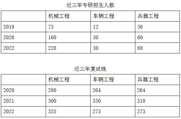 23年考研复试线预测:三个专业复试线比较来看,报考兵器工程最为稳妥,与其他两个专业相比,每年的复试线较为稳定。而车辆工程和机械工程会出现大小年现象,所以在选择专业时需要慎重考虑。比如21年车辆工程复试线高于机械工程三十分钟,但22年就低于机械工程近五十分。可以看出大家对于想要上岸的考虑比重已经超过了对于专业选择的考虑比重。加上即使选了车辆工程专业,在挑选导师时,也可以选其他专业的导师(仅对专硕而言),所以报考时专业的选择倾向相对来说没那么重要。所以,选择23年可能复试线较低的专业是最划算的。