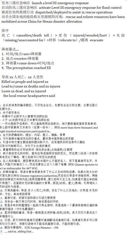 考前:复习以前所有练习的编译,以及积累的小词与表达,并按照新闻分类归纳编译结构,总结需要注意的地方。