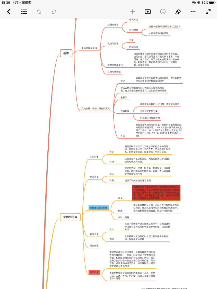 如下图,关于文物学的基本理论,可以做成这样的思维导图: