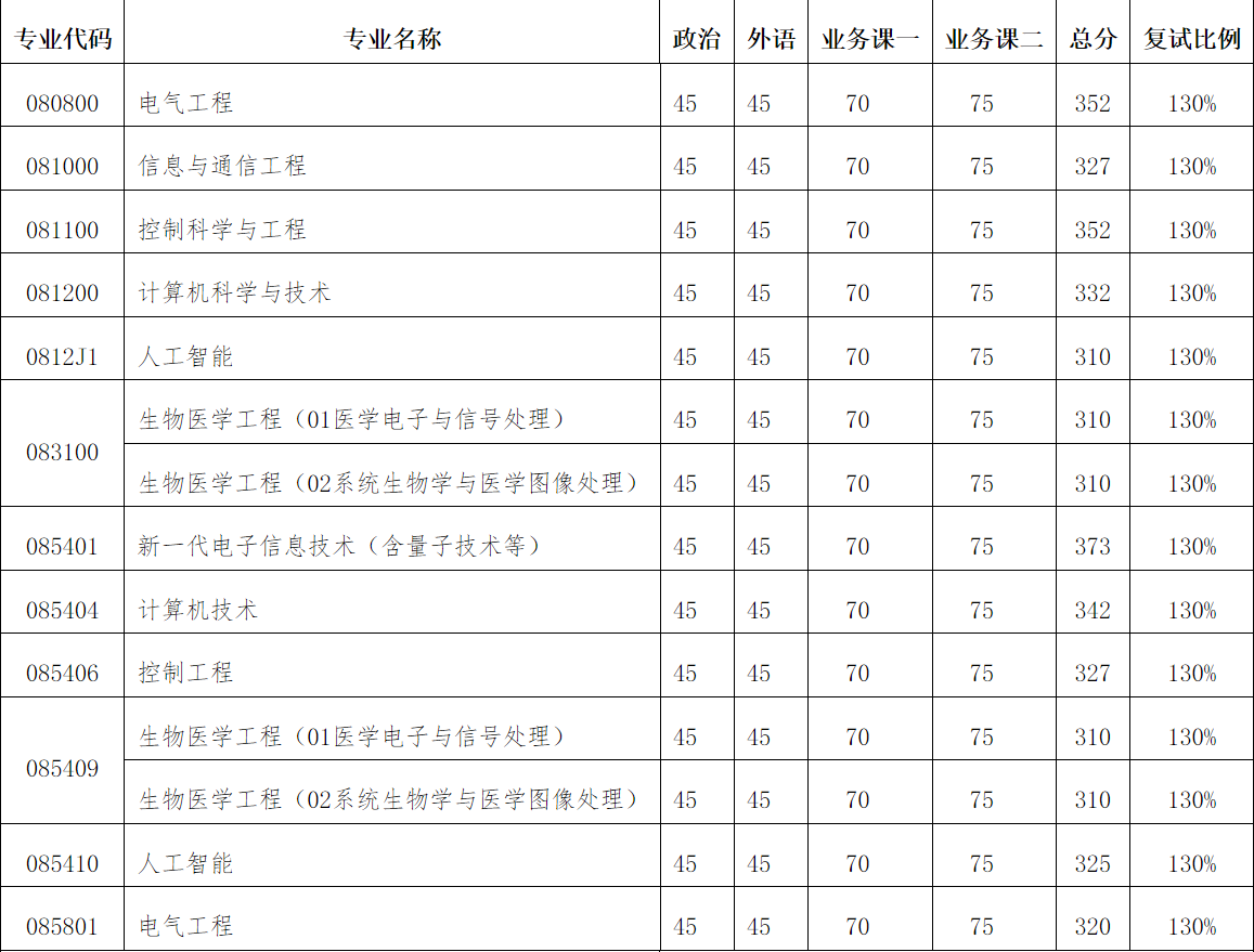 通过与往年对比,电气学硕和新一代等专业的复试线大幅度上升,生医和人工智能几乎与往年持平,通信学硕略微降低。所以选择学硕还是专硕需要多加考虑。报录比和具体复试线在表中都很清楚,我不再展开赘述。