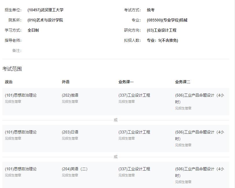 我是从四月份决定报考的武汉理工大学,由于本科学习的产品设计专业,武理的设计专业较为出色,同时在华中地区是唯一有设计博士点的院校。因此决定报考的武理。随后也面临选择学硕还是专硕的问题,我首先尝试对专业课参考书进行了大致阅读,发现自己在设计学(学硕)和机械(专硕)中,对工业设计工程的书籍更加感兴趣,最后在四月底确定好了专业方向。