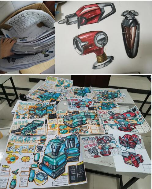 我在整个过程中也进行了大量的练习,这样子才能保证考试四个小时里画完画面。平时我也会去pinterest,花瓣,普象等网站进行好的图片素材收集,这样子有利于我去设计更合理的造型。在后期我也会固定自己习惯的马克笔色号,保证用的习惯,不会花哨。
