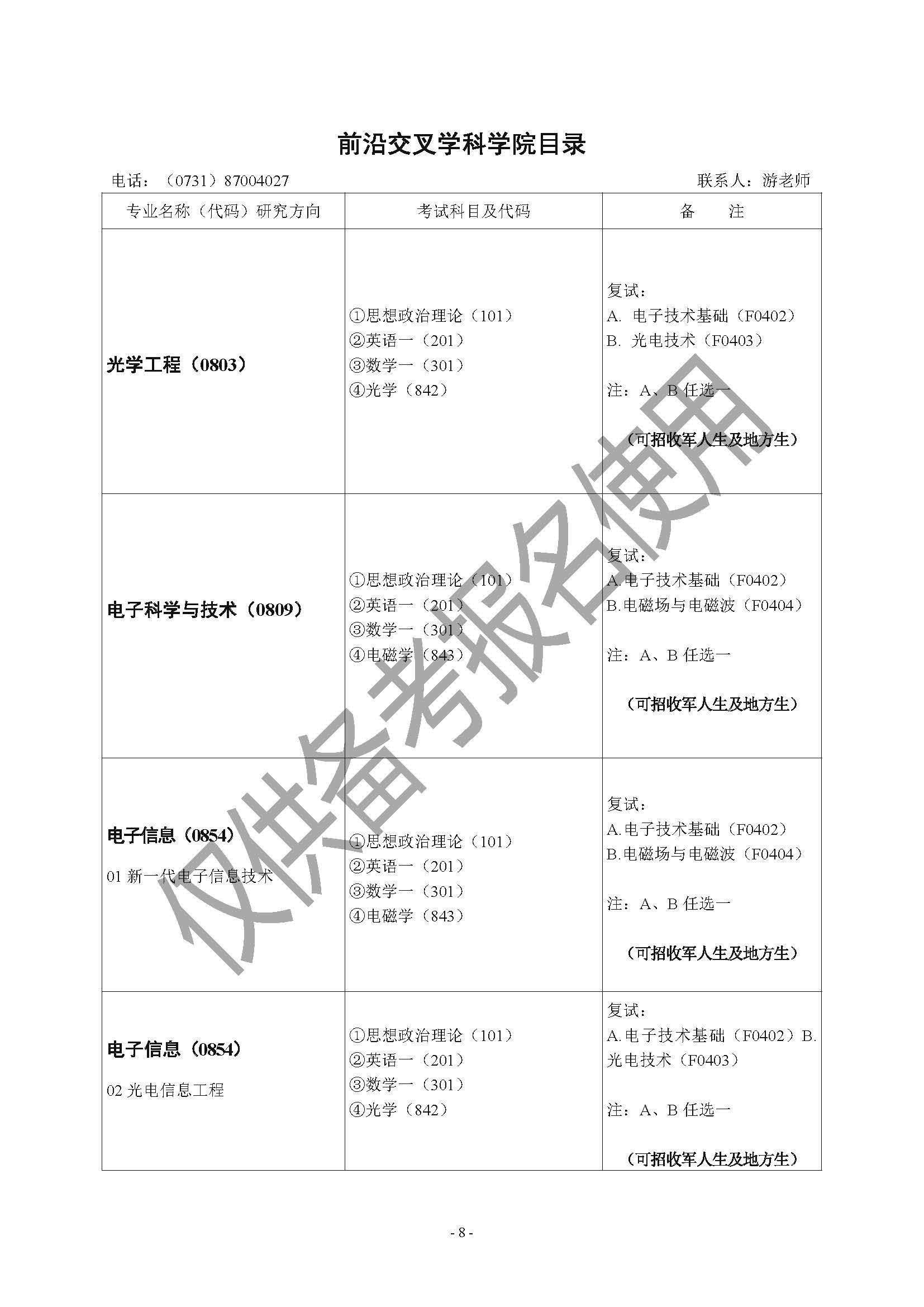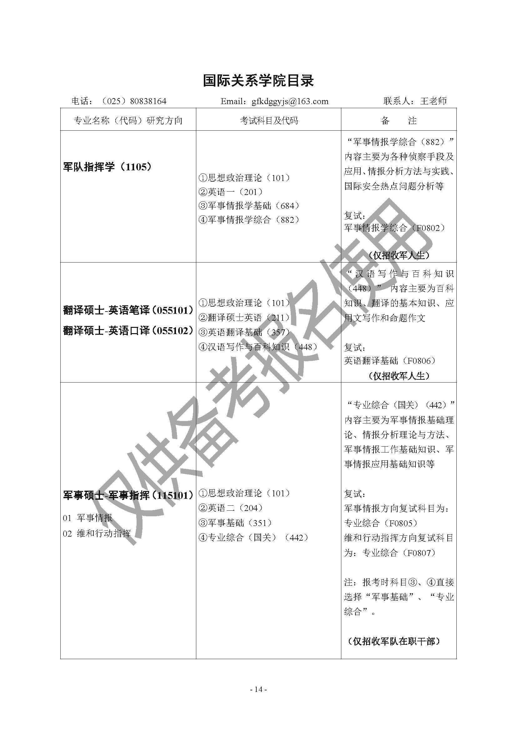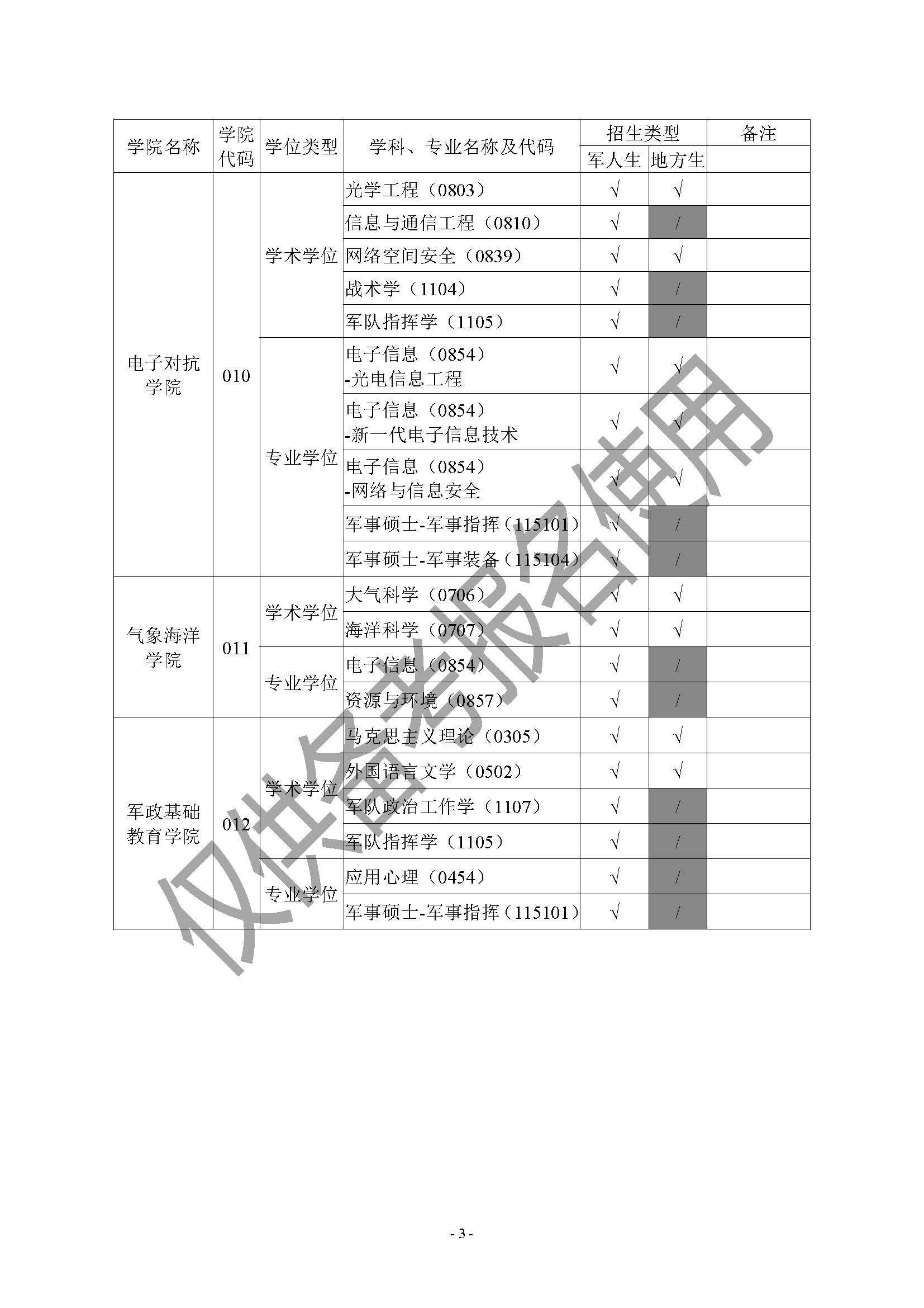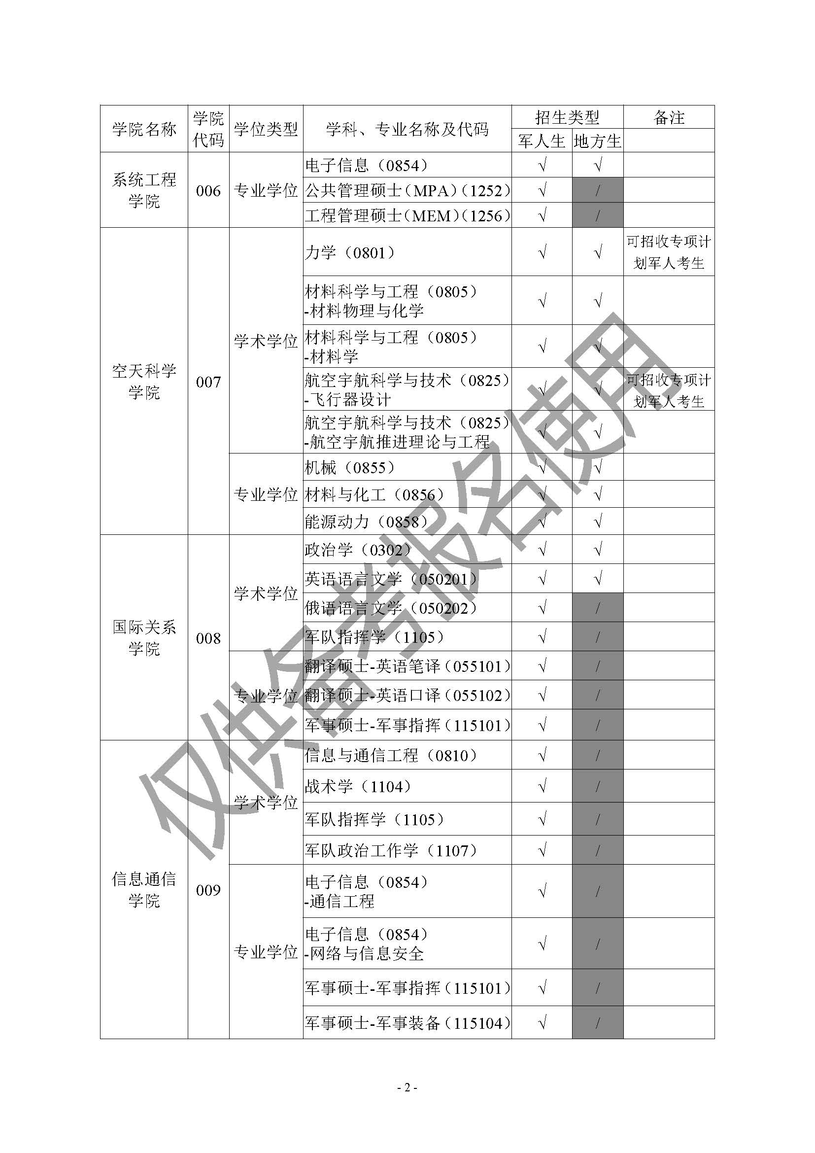 2023年国防科技大学硕士研究生招生专业目录、考试科目