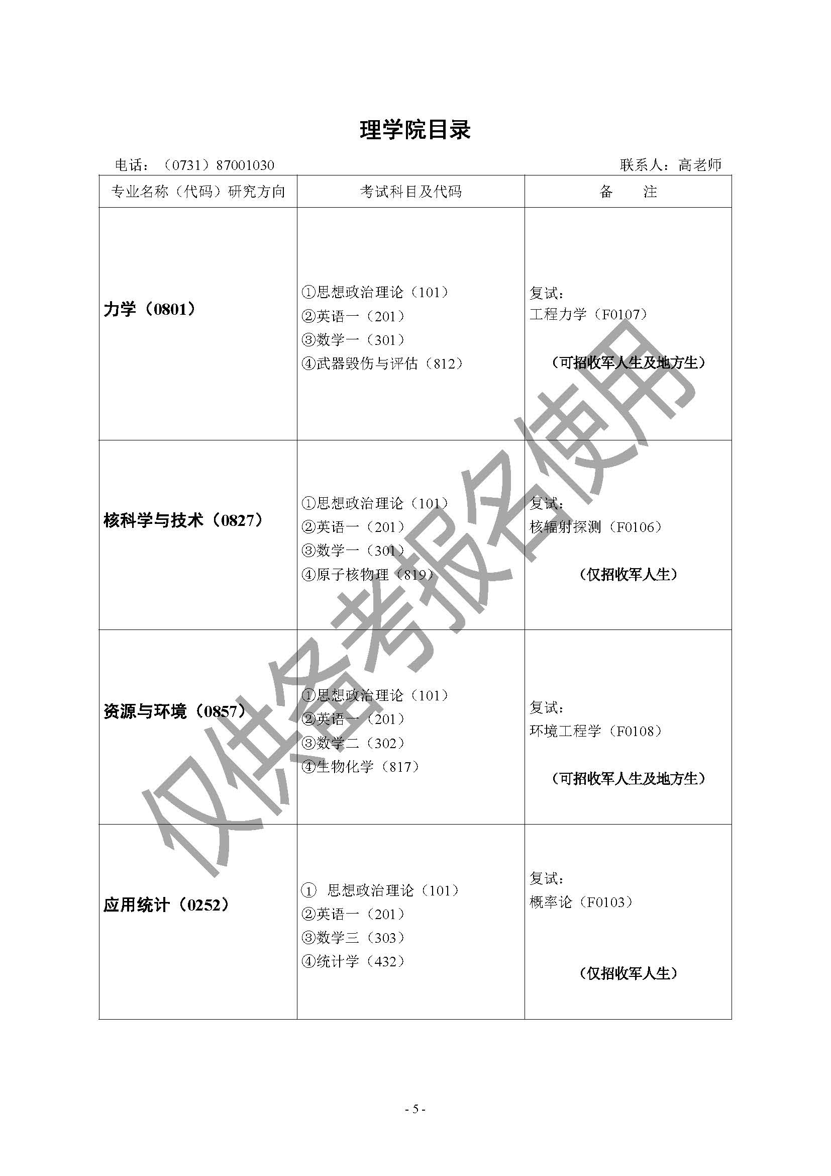 2023年国防科技大学考研理学院硕士研究生招生专业目录、考试科目