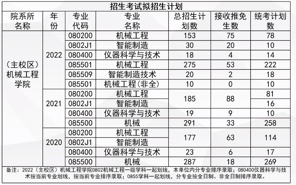 对于学硕来说(包括080200、0802J1、080400),近几年计划招生人数基本在200人左右,其中统招人数都在100人左右,招生人数还是比较多。