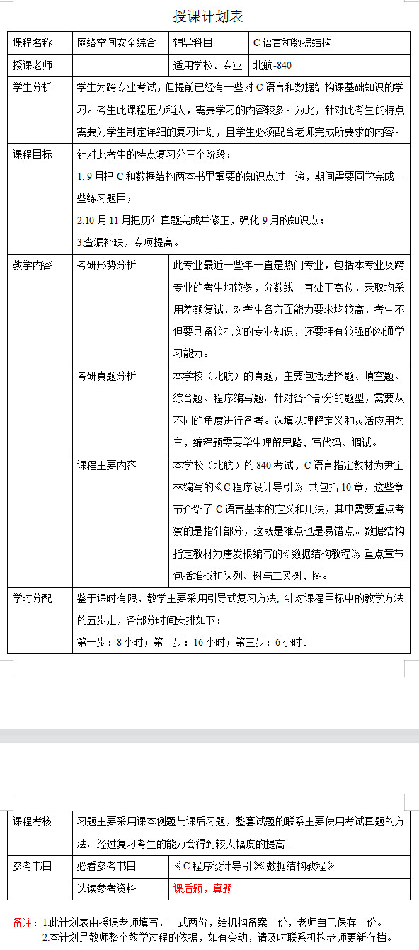 新祥旭考研一对一:2023年北京航空航天大学网络空间安全考研一对一辅导授课计划