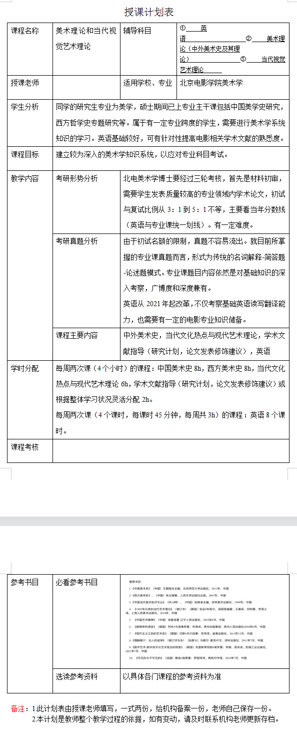 新祥旭考博一对一:2023年北京电影学院美术学考博一对一辅导授课计划