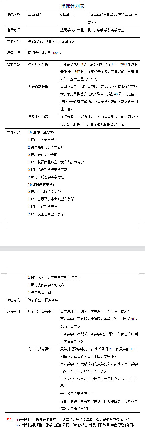 新祥旭考研一对一:2023年北京大学哲学系美学专业考研一对一辅导授课计划
