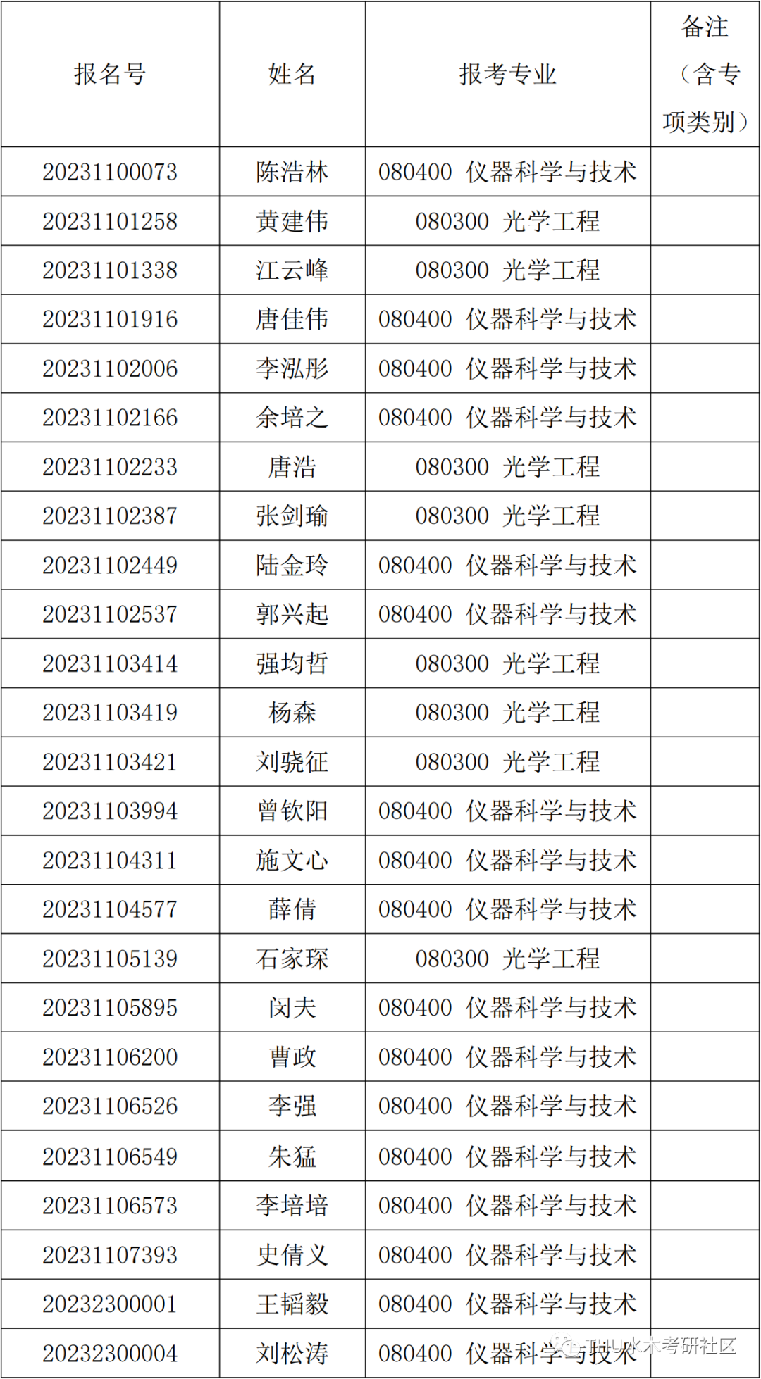 清华大学精密仪器系 2023 年接收优秀应届本科毕业生免试攻读研究生080400 仪器科学与技术专业博士生入围综合考核的名单已确定,现公布如下: