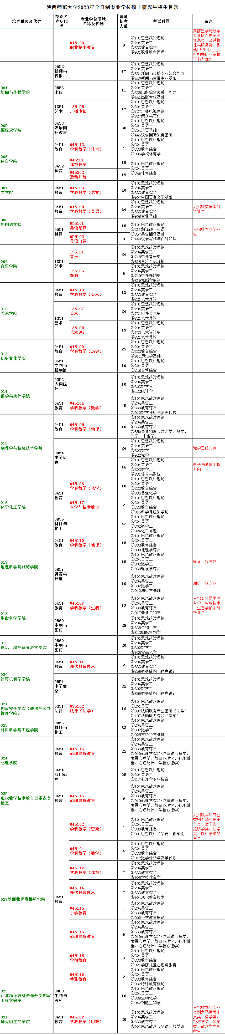 2023年陕西师范大学全日制专业学位硕士招生目录