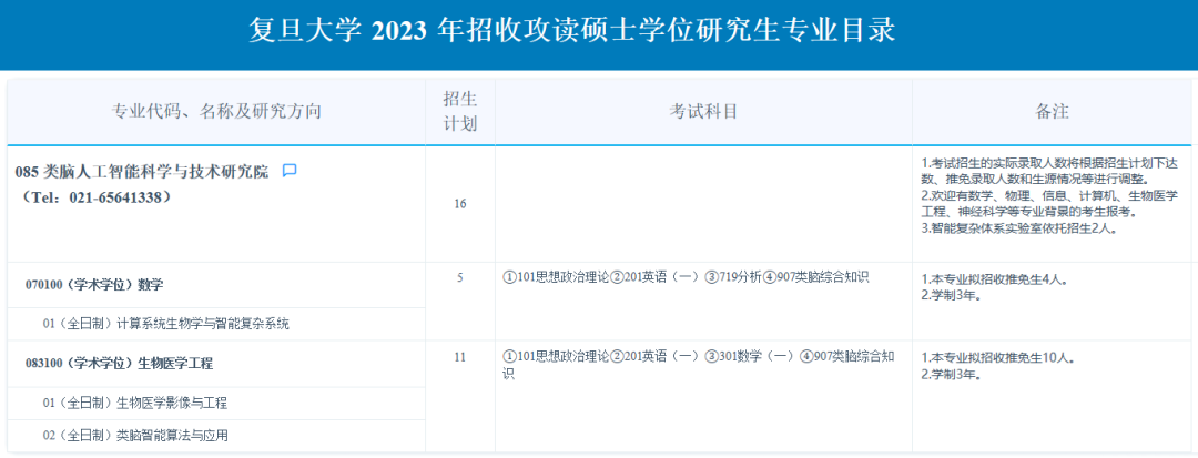 复旦大学考研辅导班:2023年复旦大学类脑人工智能科学与技术研究院硕士考研招生目录